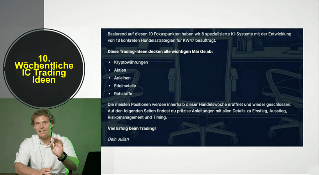 Julian liefert dir in 45 bis 90 Minuten die wichtigsten Entwicklungen zu KI, Märkten und Portfolios, präzise, datenbasiert und sofort anwendbar.